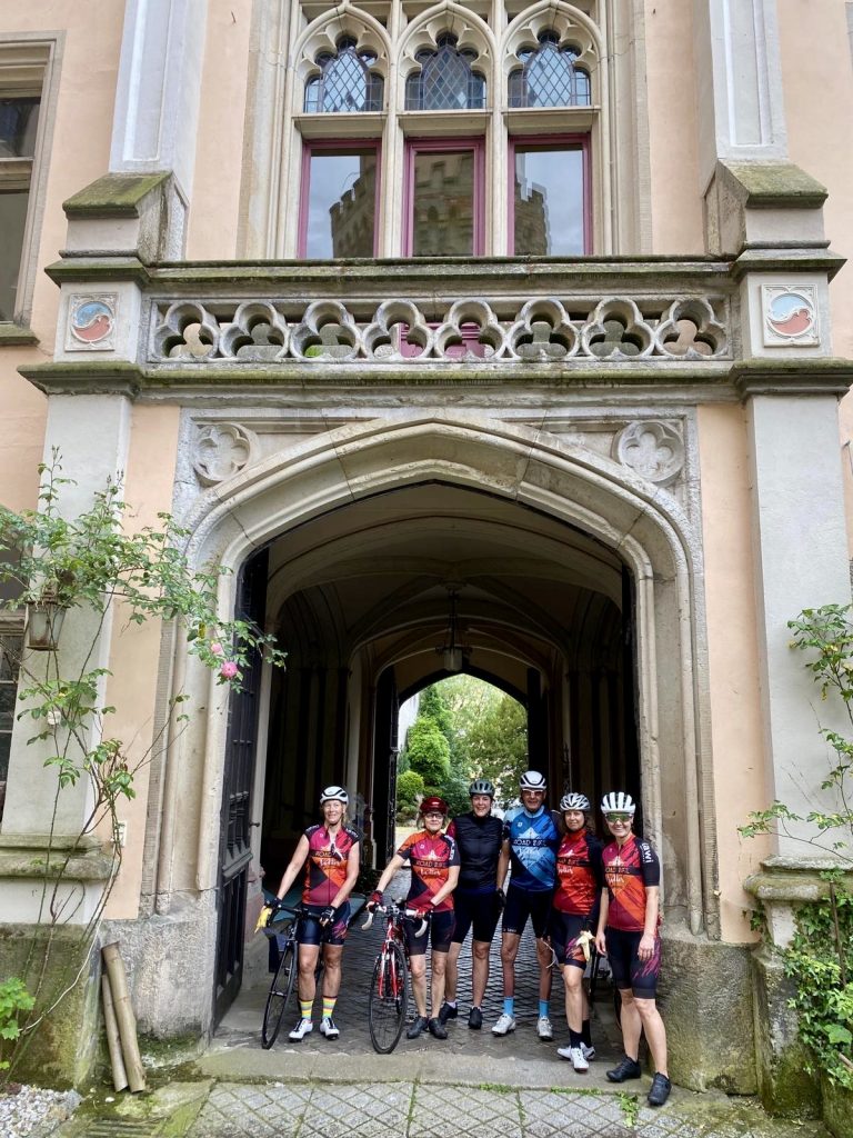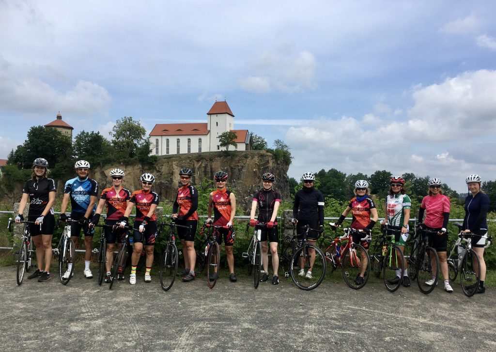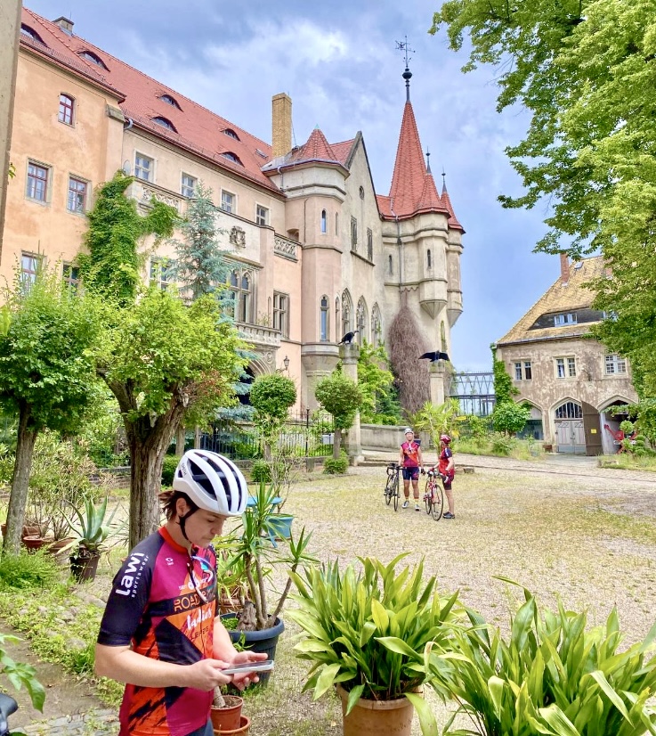 Weiter führt die Route an den Lübschützer Teichen vorbei Richtung Püchau. Das Schloss im neugotischen Tudor-Stil beeindruckt mit Türmchen und Zinnen, Nebengelass, Brunnenanlage im Vorhof, einem Torbogen zum Innenhof sowie zwei Teichen im Schlosspark. Die privaten Eigentümer laden an manchen Tagen zu Führungen ein. Genug der Schlösser … Den Wegweisern folgend führt der Kurs über Kossen, Gotha, Pehritzsch, Jesewitz und Gottscheina nach Gohlis zurück. So gemeinsam wie die Roadbike Ladies immer starten kommt der Tross gegen 13.30 Uhr an.