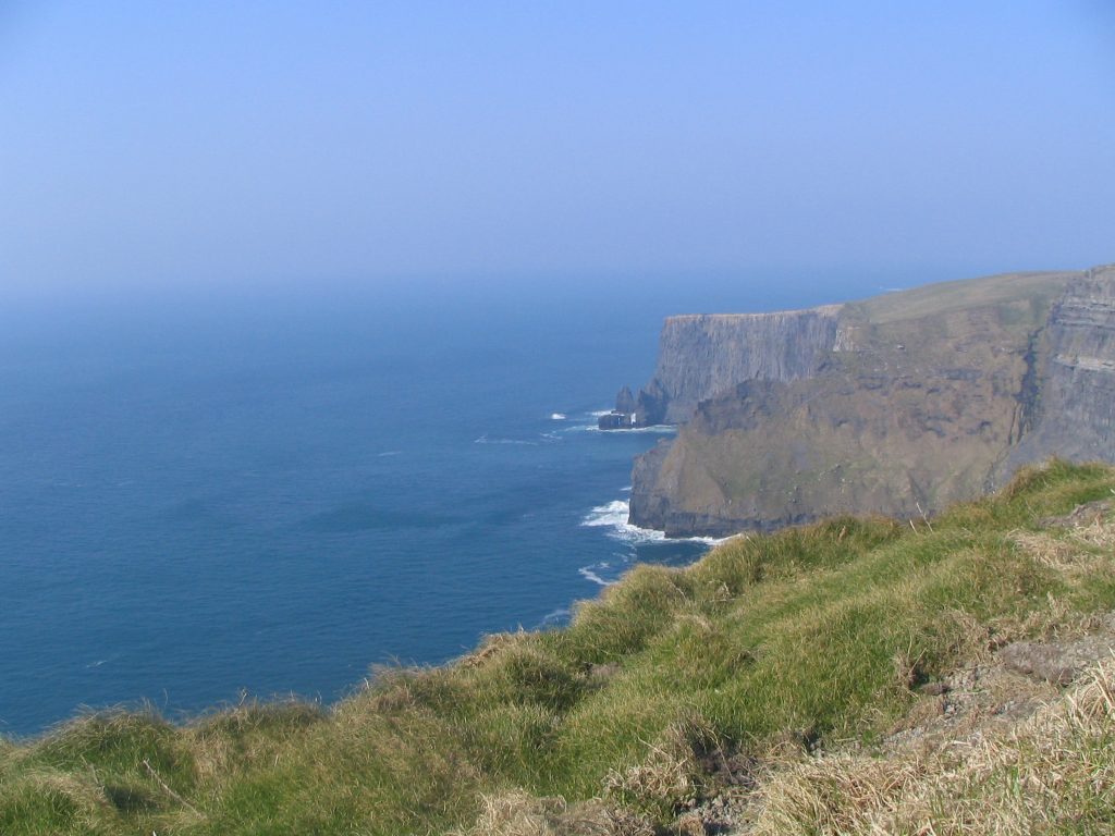Weniger allein ist man an den Cliffs of Moher im County Clare. Die Anziehungskraft des Naturmonuments ergänzt ein Visitorcenter. Die für 31,5 Mio. Euro gebaute Anlage des Besucherzentrums mit Restaurant, Café, Ausstellungsräumen und Shop wurde in das Innere der Klippen versenkt und lugt jetzt wie das Cockpit einer fliegenden Untertasse mit Panoramascheiben über die einzigartige Gesamtszenerie. Die während er Bauarbeiten entfernte Grashaube wurde dem Hügel wieder aufgesetzt. Mit der neuen Umfriedung aus Steinplatten und Aussichtsbuchten wurde nunmehr an den 250 Meter langen South Cliffs gleichzeitig für mehr Sicherheit an den nur dünn überwachsenen Abgründen gesorgt. Parallel entstand ein maritimer Lehrpfad über dem Atlantik. Einblicke in die Geohistorie der Klippen gibt die Multimedia-Ausstellung. Der sagenhafte Ausblick über die Atlantic Edge und den tobenden Ozean ist nun selbst bei schwieriger Wetterlage möglich.